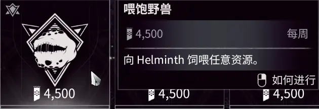 向HELMINTH饲喂任意资源:HELMINTH模块在火卫二声望到达3级后在儿子处购买(需要完成惊惧之心任务)。