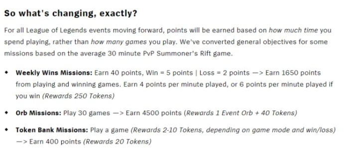 LOL开发团队宣布,从下一个通行证开始,通行证代币获取方式即将改变,不再是游戏局数,而是游戏时长决定。
