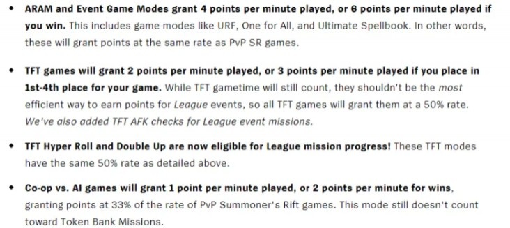 这些云顶之弈模式的积分获取和上面提到的获取方式相同(即每分钟获得2积分,如果排在1-4名则该局游戏每分钟获得3积分)。