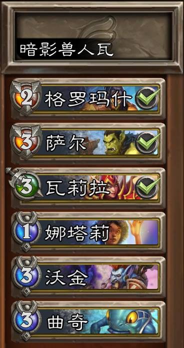 这里我多推一套暗影兽人瓦,变阵更加灵活一些,对三红奶猩猩阵容直接首发暗影瓦即可。
