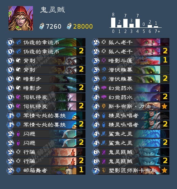 老外的鬼灵贼非常喜欢邮箱舞者而不是国服的赤烟·腾武,同时他们还很喜欢满编幻觉药水,实在想带新英雄牌的同学在国服现有构筑里面取舍即可。