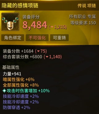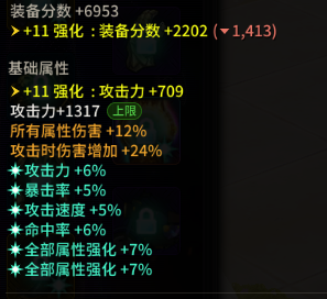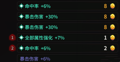 这里说说什么属性才是收益高的属性呢。每个号情况不一样,需要看过号才能计算,不过一般情况下,尽量避开主属性5%(比如力量5%)、全部属性强化7%这两个收益比较低的,命中6%(目前四天王有30%命中就达标,达标前命中收益很高,达标后没收益或收益低),赤面鬼的话就避免6%攻击力。