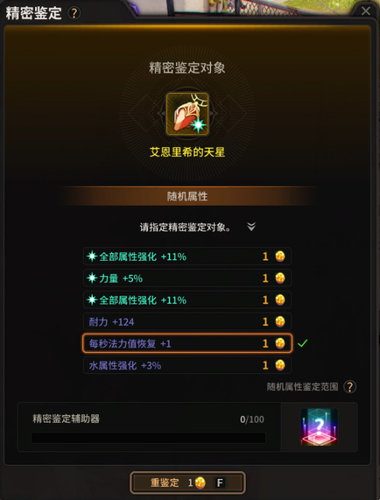 那么如何让这3条也变成珍贵属性呢?这时需要使用一种更稀缺的材料精密的薛定谔鉴定石。