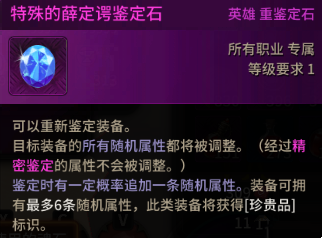 建议把特殊的薛定谔鉴定石留到有传说装备后再用。因为从1词条新增到6词条,需要消耗大量特殊的薛定谔鉴定石,传说装备初始就有4词条,再新增到6词条,消耗就少很多。运气好的话,几个特殊的薛定谔鉴定石就能从4孔开到6孔(脸黑的情况下,上百个都不一定能开到6孔)。