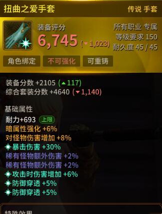 我的戒指最后一个普通属性暴击伤害+6%,就可以利用上面这个技巧,花更少的精密的薛定谔鉴定石,洗出更珍贵属性,这样就可以得到一个6词条的成品装备了。