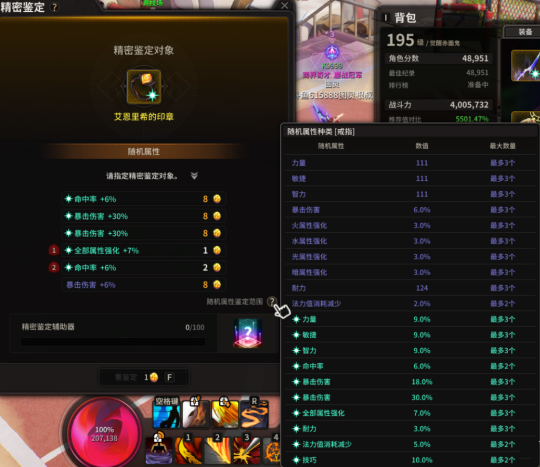 2、3、4号孔建议洗成其它的珍贵属性,回头再洗1号孔,直到1号孔出现第3个暴伤30%,这样可以节省非常多的精密的薛定谔鉴定石。
