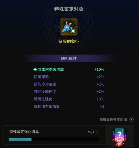 这时另外一个技巧就派上用场了,普及一个知识点:精密的薛定谔鉴定石不仅可以针对特定属性进行鉴定,鉴定时还有可能新增一条随机属性。利用这个技巧,可以使用精密的薛定谔鉴定石锁住某个普通词条一直洗,直到开孔。