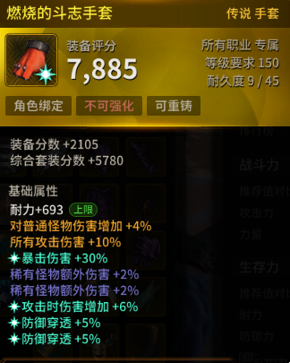 如图所示:2条黄字属性下面有6条青绿色属性(俗称:词条,6词条也叫6孔),属性前面带个星星的标志,说明该词条属于珍贵属性,如果6条属性都是珍贵属性就算是成品装备了。
