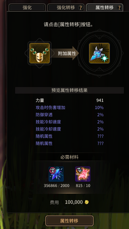3:转移后,原属性以及红色的数字编号全消失了,且多出了2条随机属性。