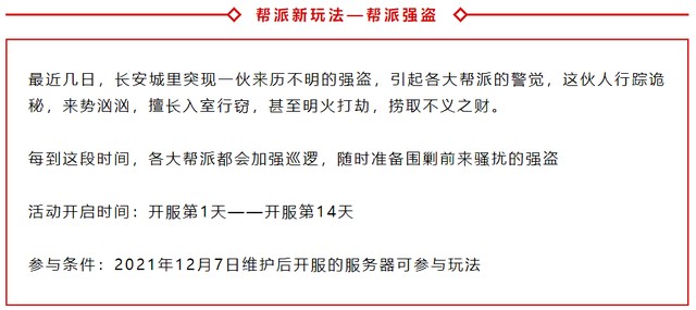 解读:这是仅对新区开放嘛?看来这几天骨妹要去新区走一走,体验体验帮派强盗这个新玩法。