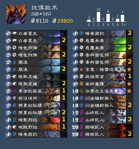 卡组只携带了冰雪之王洛克霍拉一张新卡,聊胜于无,我觉得是很中规中矩的牌,风怒让其进攻性很强,但是半血5费入场,突袭解场又感觉亏。