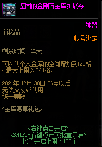 首先是金库扩展券,使用后,可将任意品级金库升级至坚固的金刚石。