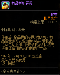 然后是物品栏扩展券,大家都熟悉的,扩展券根据背包扩展阶段,价格也不一样。一般是推荐用在最贵的阶段。