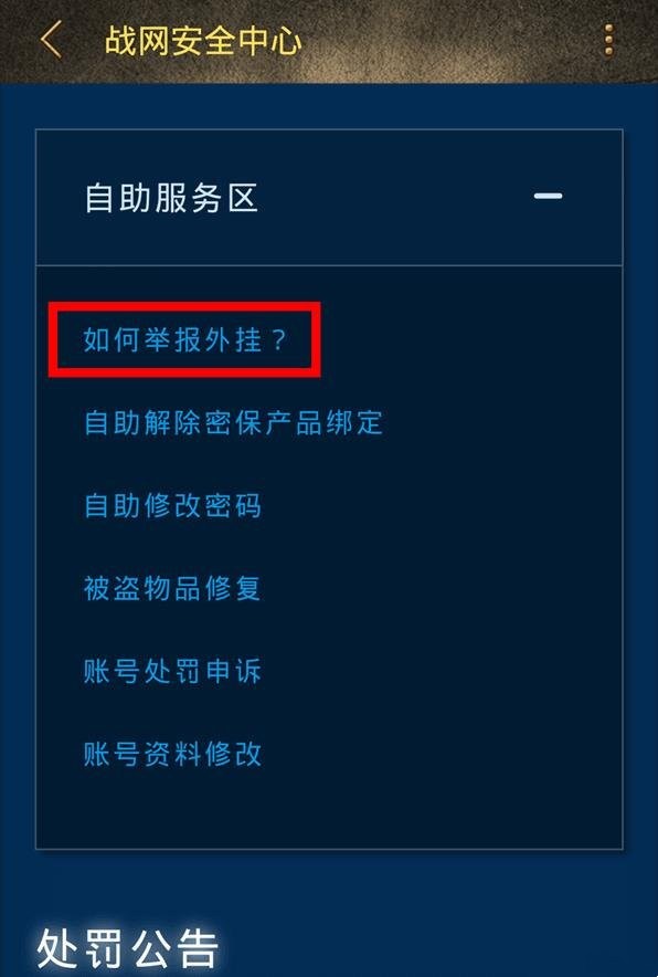 2.往下拉,自助服务区的“如何举报外挂”