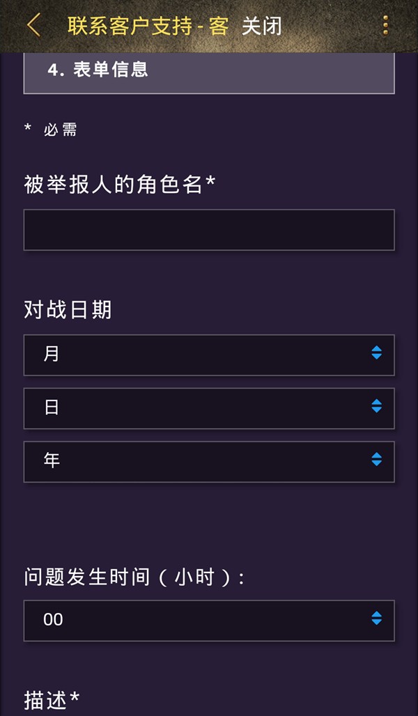 5.填写被举报人信息和时间,可以在最近的对手查看被举报人信息。