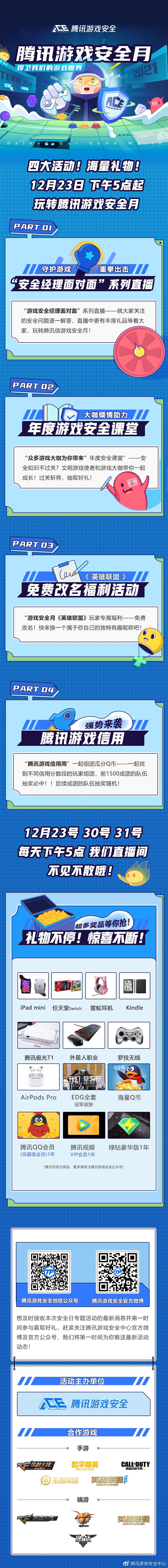 安全月(日)作为腾讯游戏安全的年度活动,每年都持续向玩家输出游戏正能量,各大游戏也一如既往,严打违规!当然少不了的超级丰厚的福利大奖,各种大奖抢不停!