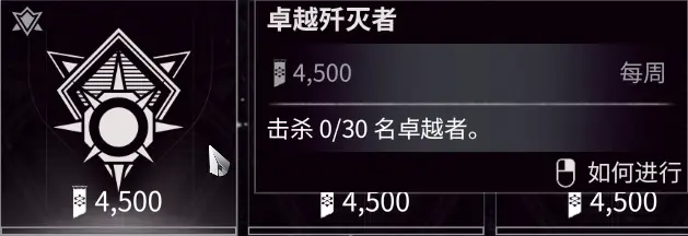 击杀30名卓越者:日常跑图和本周圣殿打完基本就完成了。