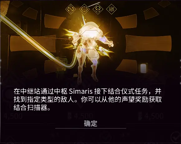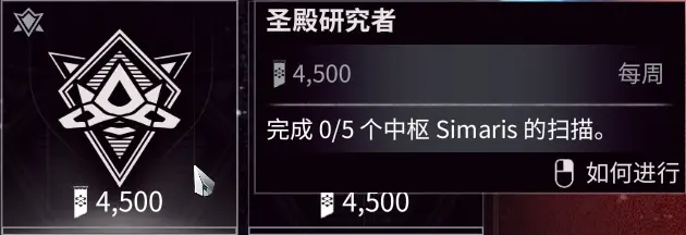 5个SIMARIS扫描:和歹友一起组队吧,不是太黑2+2的话一天就能完成,推荐去捕获钢铁的结合目标,更多声望。单人也可以抓完后退出任务来刷进度,只是收益就降低了。