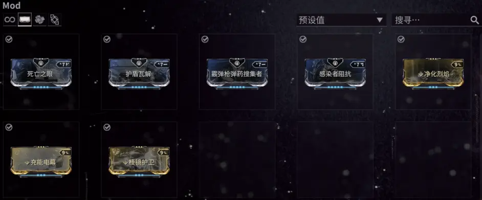 MOD优先级:护盾瓦解>死亡之眼>感染者阻抗>霰弹枪弹药搜集者。PVPMOD按需兑换即可。