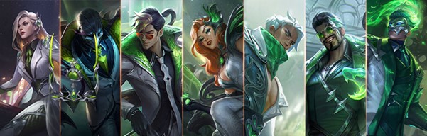 七款执事皮肤分别是影执事 劫、焰执事 布兰德、幻执事 乐芙兰、刃执事 德莱文、无极执事 易、虚空执事 玛尔扎哈、烈阳执事 蕾欧娜。售价为7900点券