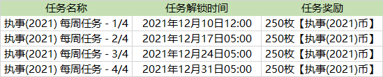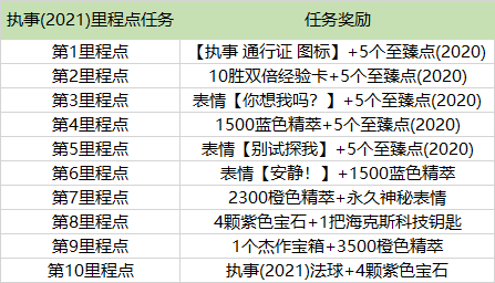 该任务对所有玩家开放,但每位玩家只能完成一次,完成任务获得60枚执事(2021)币与执事(2021) 图标。