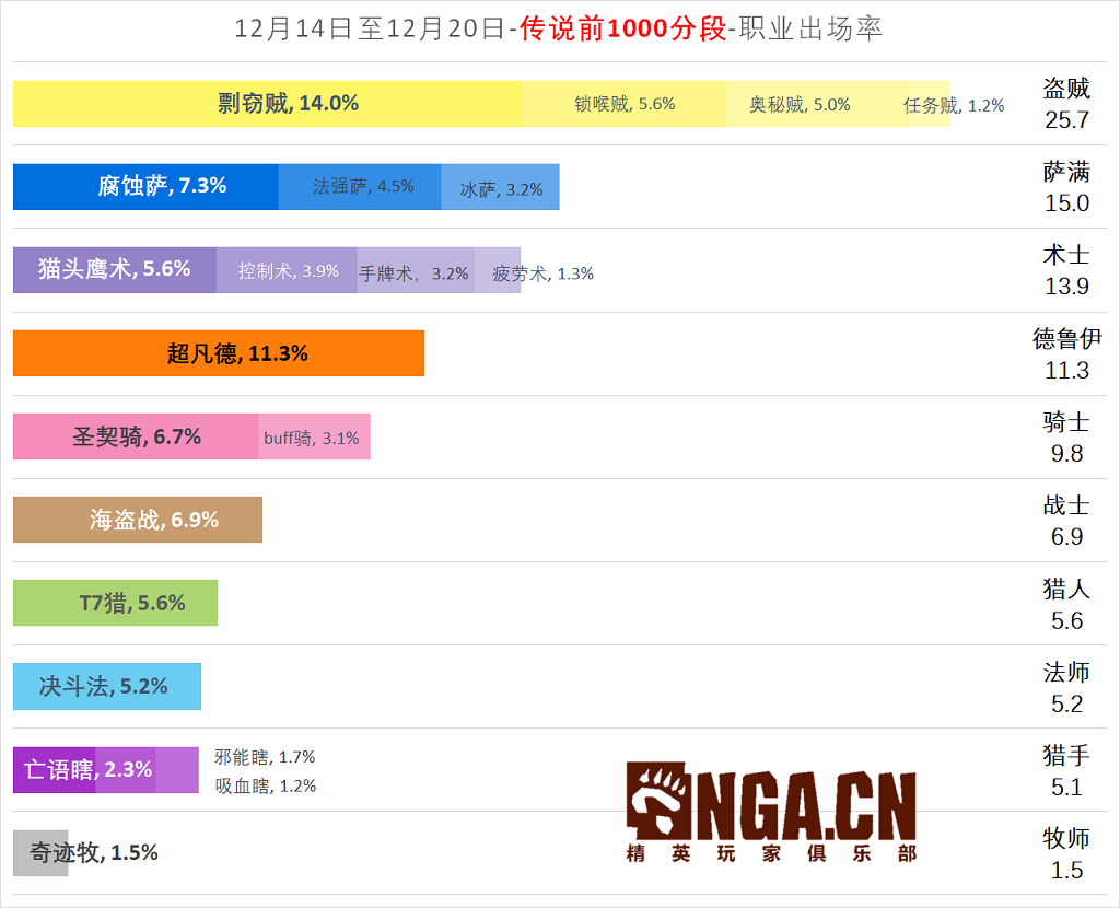 圣契骑的宿敌莫过于任务贼。补丁上线之前,锁喉贼统治高分段,剽窃贼活跃于传说之下,任务贼查无此人又数据好看,俨然昔日的偶数骑。但补丁之后,锁喉贼的宝贝八爪鱼被削弱,任务贼的热度终于有所上升,甚至在高分段中亦偶有出现。虽然我们不知道为何军七体新卡系缺席奥山扩展,但玩家优化构筑后的任务贼可谓是节奏之王。我们还得提一嘴刀贼,由于术士“神器”秘银杖的削弱,环境中的武器去除手段也应声减少(谁能想到2021年炉石吃软的主要是术士),而且法师和战士位于当下热度前列,羁绊够深的刀贼6费可能已经砍死对手。