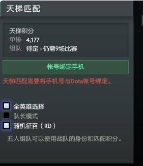 2、进入dota2游戏打开天梯 ,选择账号绑定手机。