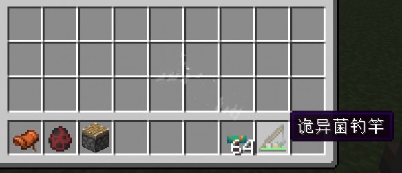 这时从包里掏出诡异菌钓竿,并右键骑乘炽足兽,这种钓竿与胡萝卜钓竿制作方法一样,在制作栏中左边一个钓竿右边放个诡异菌即可。