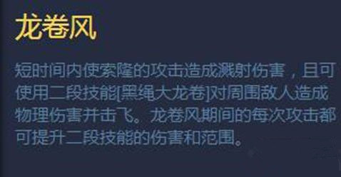 又是个二段AOE 但需要普攻四次才能发挥二段全部威力 冷却贼长。 索隆要想对线不虚对面,一定要学会利用技能的高爆发AOE强制压线