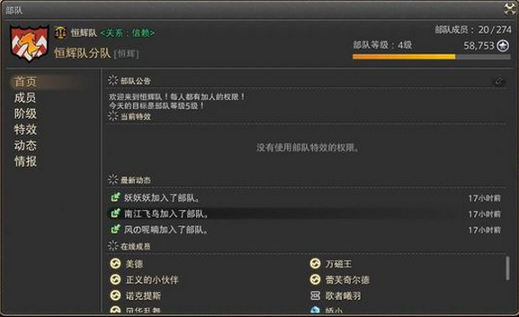 ff14里面的部队也就是其他游戏里面的公会,加入之后可以进行内部的活动,部队系统也就是我们大家所熟知的“公会”与“通讯贝”不同的是,公会不仅仅能提供更多的会员,它还是一个“可成长”的系统.
