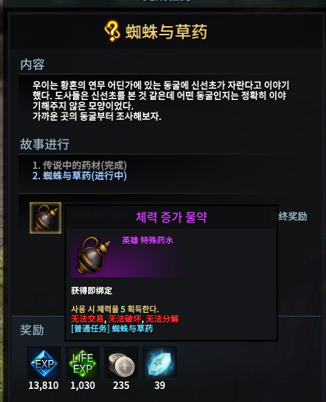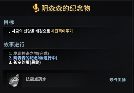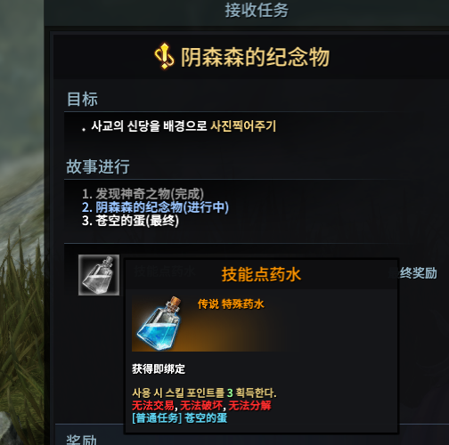 练级最快的还是直接主线,其他支线不用做,但是有些支线是需要做的,因为会给技能点,生活技能点,以及属性点药水,但是这些任务都是可以辨认的,因为任务的外观不一样,如下图
