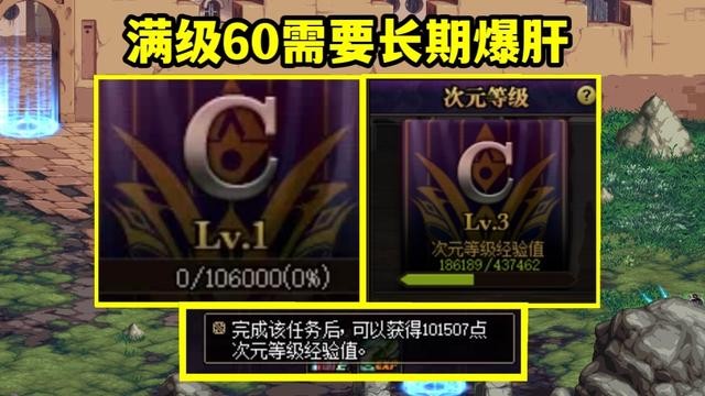 也就是说,兑换转职书,不仅要提升次元等级到60级,还要搜集330个精髓,提升等级和获取精髓的主要途径,就是每天的3个指定副本任务,想搬空商店,拿到转职书,就需要连续不断的爆肝,连续不断的每天上线做任务。升满60级需要多少时间,秀儿无法预测,可以看2张图片,完成1个任务的经验是101507点,第1级的升级经验需求106000点,第3级的升级经验需求437462点,60级需要多少经验暂时不知道,但可以肯定的是,必然是一个漫长的爆肝之旅。
