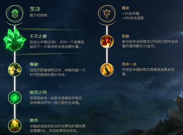 不灭之握——特朗德尔专注于速推,对手在掉一塔后基本上开始紧张,来抱团防守,不灭之握让特朗德尔前期的坦度和伤害都不错。