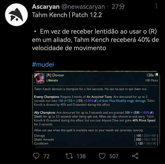 对友方英雄使用R技能时,将移除此前的减速效果,并新增提供40%的移动速度