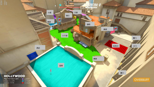 又到了地图课堂时间!这个系列致力于用图文并茂的形式,配合大量的标注,帮助玩家理解每一张地图的玩法。这周我们来到了美国电影业的心脏,好莱坞。不论职业比赛还是玩家之间,好莱坞都拥有着非常高的人气。它的布局在所有混合图中最为健康,因为它有值得争夺的咽喉要道,高低差异,多样的侧翼路线,使得它成为了玩家最喜爱的地图。