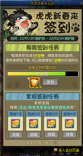 活动期间,每周在线30分钟即可完成签到,累积签到可获得将期限克隆转换为永久的兑换券。