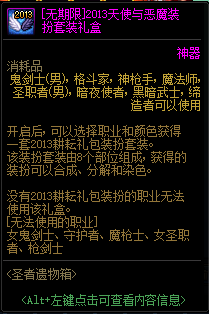 DNF2013天使与恶魔时装通过圣者遗物箱活动回归,这属于早期的时装,很多玩家都没有,不过用来幻化别有风情,下面就给大家带来DNF2013天使与恶魔套装时装外观效果展示。