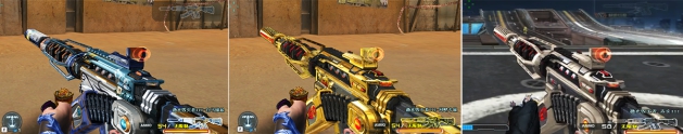 激光毁灭者III-白马银枪外观上是银白色与淡云水蓝为主,银白一直都是沉稳之色,代表高尚、纯洁、永恒;而蓝色代表雅静,纯净又蕴含着创新,使枪械氛围深邃神秘,复古优雅。枪身有多处印有祥云纹案,整体风格大气上档次,看起来非常舒心,给人耳目一新的新鲜感,温润了战场烦躁的心。