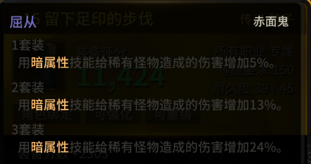 屈从 暗属性伤害针对稀有怪物增加24%伤害 大招流的赤面鬼 基本所有技能都是暗属性的!