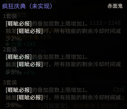 疯狂庆典(未实现) 这个东东还没实装 被动睚眦必报上限增加3层!所有技能冷却-8%