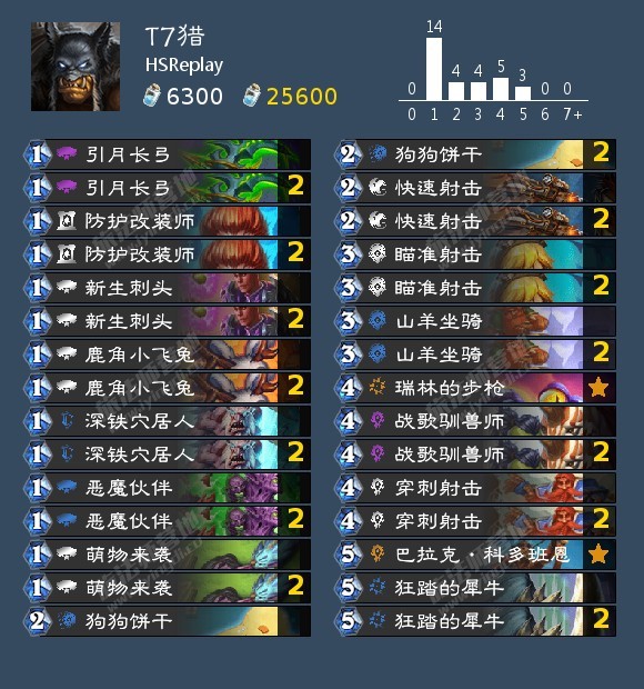 T7猎是为数不多的我能遇到的不是盗贼的职业(还有一个是决斗法)我玩德基本上没赢过这个卡组,打扰了。穴居人虽然削弱了但配合萌宠来袭狗狗饼干还是能打爆德鲁伊的狗头。