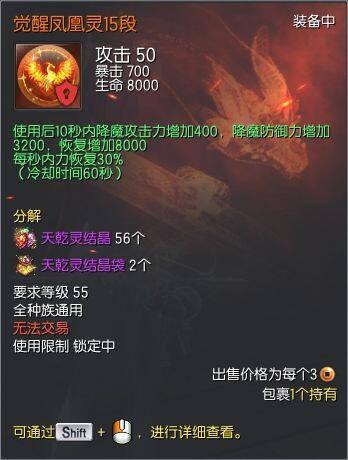 由于以上的原因等,至少8段以下的凤凰灵是不怎么建议使用它的主动特效的,当它是个戒指耳环项链之类的普通装备就好了。