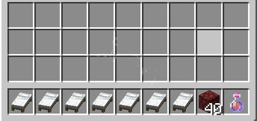 首先准备大量的床,抗火药水,以及一些必备的食物与镐子。