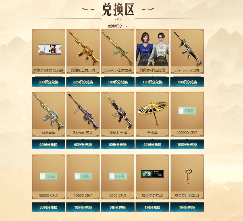 5、兑换:获得的积分可以在兑换区兑换道具;兑换会消耗对应积分;