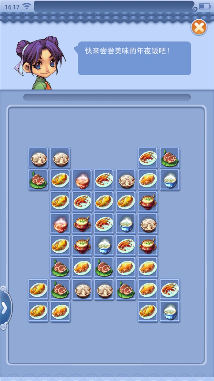 活动期间,侠士们每天登陆口袋版,即可在“突发事件”中点击“吉食贺岁”按钮参与该玩法。侠士们需要将相同的美食连接起来,如果所连接的相同美食之间没有障碍或者连线弯曲次数小于2即消除成功,品尝美食。每次成功消除,都可以获得美食积分。成功品尝所有美食即获得游戏胜利,即可获得奖励。每天最多获得10次奖励,每次消耗200精力,必定获得经验、储备金,还有机会额外获得五宝、环装等物品奖励。
