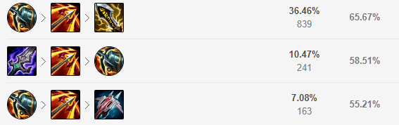 神话装备选择海妖,增加真实伤害,提升输出。飓风增加额外攻击目标,在团战中会有明显的AOE效果,无尽之刃大程度增加输出能力。破败有不错的吸血和减速效果,多米尼克领主则是有更好的打坦能力。