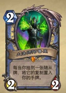 大法师阿鲁高在剧情中其实只是个不起眼的小角色,我们从他22的神材也可以看出他弱鸡的实力,不过强力的效果和在故事中召唤而出的军团异曲同工之妙,不得不说这张卡的设计也是神来之笔。