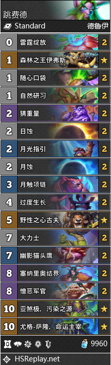 如果你喜欢跳费,却又觉得跳费德不够强,那不妨尝试一下小丑德。根据已有的数据来看,小丑德表现应该会强于跳费德。只不过这个卡组实在了无新意,因此注定火不起来。