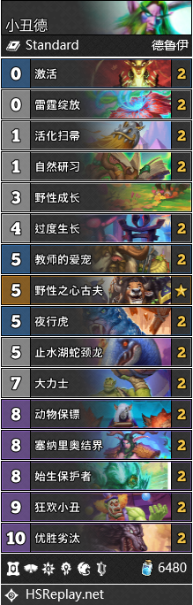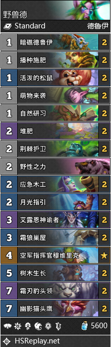 野兽德已经开发出了一套新构筑。豺狼人的削弱使得野兽德可以向更偏快攻的方向发展:松鼠换掉了农夫,穆维里克换掉了卡扎库斯。应急木工的表现很出色,作为一张过牌组件,木工明显优于生命之种和冷齿矿洞。感谢Boc4Life对这一卡组所做的优化,我们搬运的这套构筑主要也是基于他的工作。