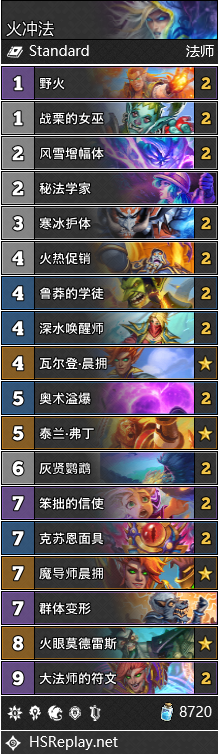 火冲法已经算是正儿八经能玩的卡组了。两种不同的构筑都有着不错的表现。总的来说,携带更多高费法术的“符文火冲法”更善于应对慢速卡组。